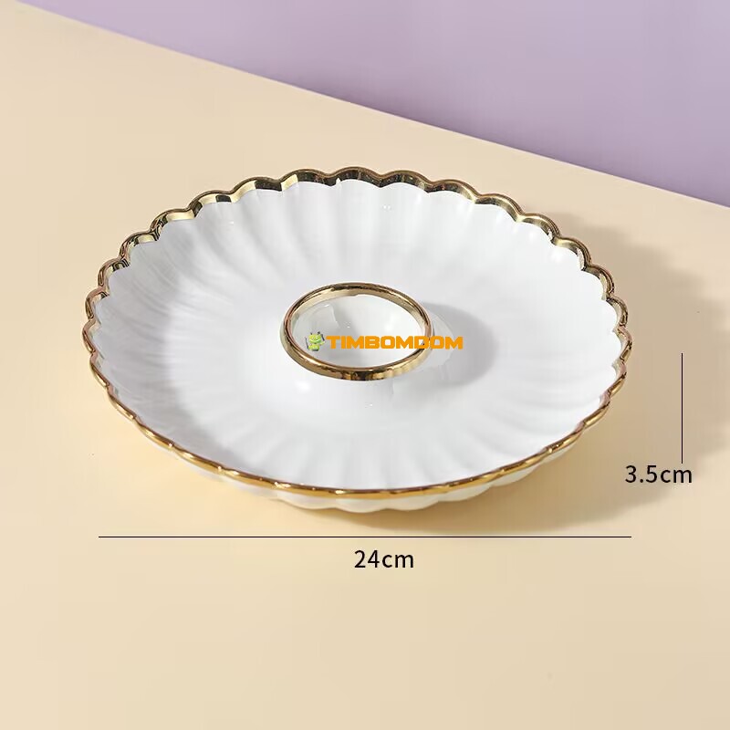 Prato servir cerâmica borda dourada / Plato servir cerámica borde dorado / طبق تقديم سيراميك حافة ذهبية / Сервировочная тарелка керамика с золотым ободком