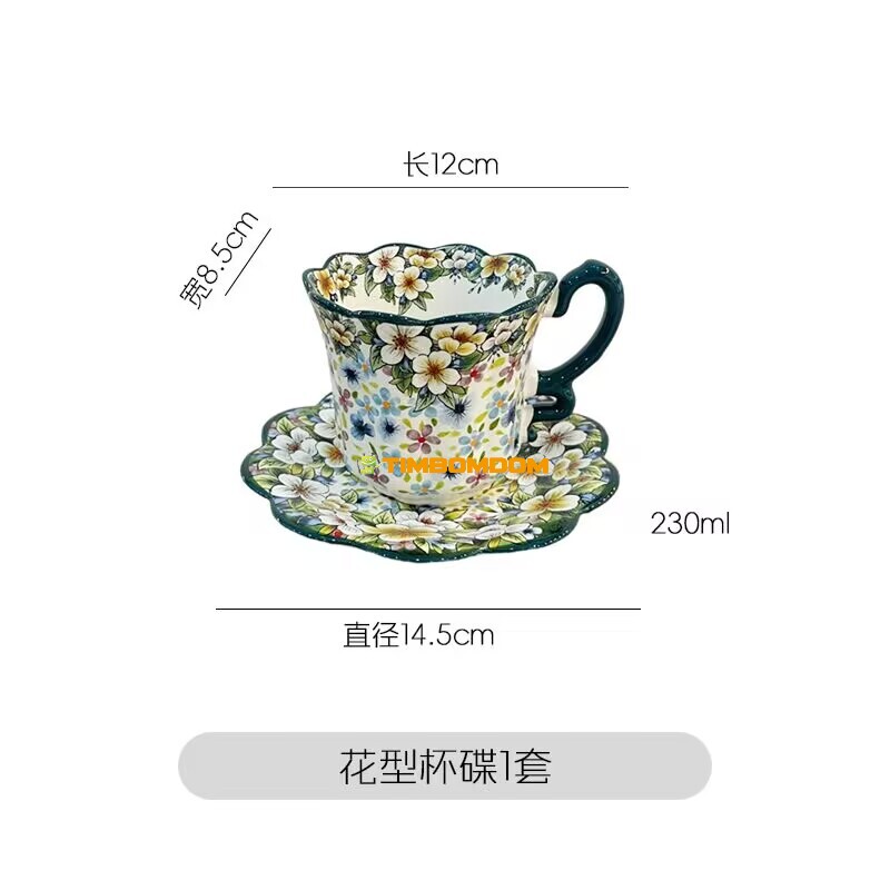Conjunto xícara e pires café cerâmica padrão flor 230ml / Juego taza y platillo café cerámica patrón flor 230ml / طقم فنجان وصحن قهوة سيراميك نمط زهرة 230 مل / Набор чашка и блюдце кофе керамика узор цветок 230 мл