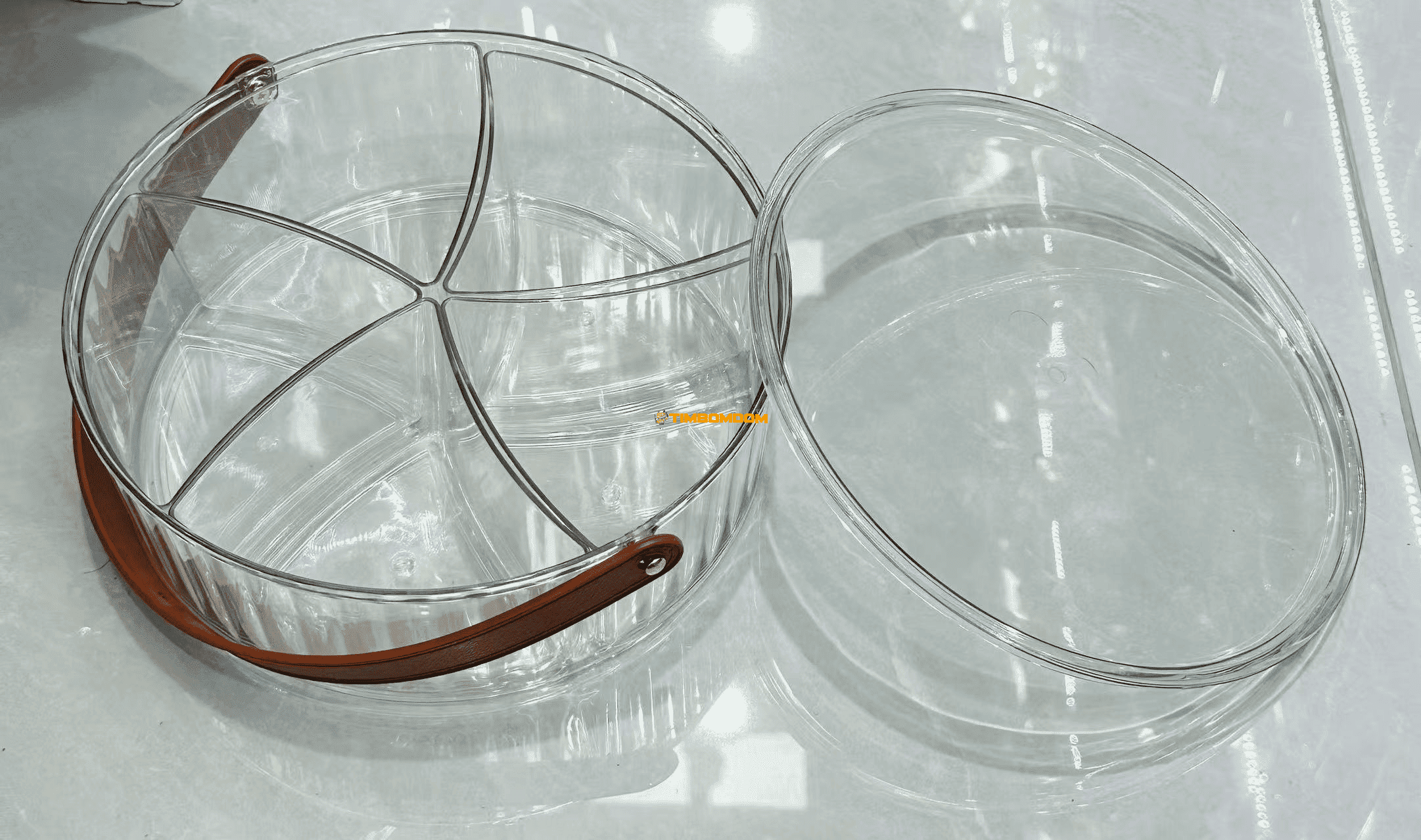 Caixa de armazenamento transparente com divisórias e alça / Caja de almacenamiento transparente con divisores y asa / صندوق تخزين شفاف مع فواصل ومقبض / Прозрачный короб для хранения с перегородками и ручкой