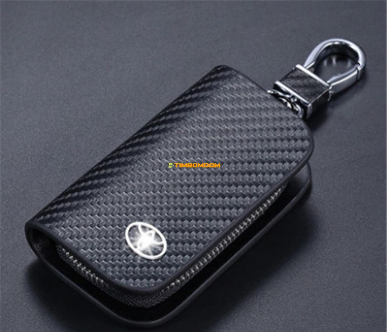 Zipper Model Full Carbon Fiber Pattern Genuine Leather Car Key Bag Universal